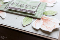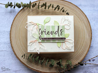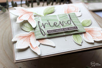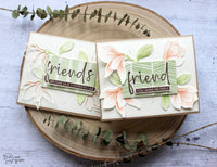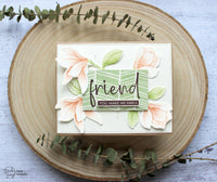 You’ll need the Magnolia stamp set and die set to create to different but very similar cards, each one with a special sentiment from the Friend stamp set.