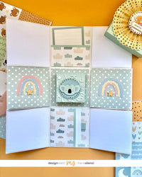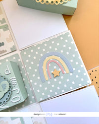 In the remaining spaces, I created two pockets and two pages that open upwards, decorated with the rainbow from the “koala” die.