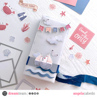In the last project for the DT, I worked practically only with dies and basic papers. This time I wanted to fully use the Sunset in the Beach collection and its beautiful and colorful die cuts.