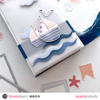 To give depth to the cover and thus be able to simulate that it is a sea, I have used the 160 gr vellum, which has a perfect thickness to support the die cuts and does not curve. In the case of the back cover, I have also used vellum but in this case, I have cut one by one the boat ropes from the paper of the collection and I have glued them on top.