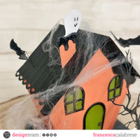 For the little orange house: the procedure is more or less the same as the other one except that I did not use the gingebread front, but the normal one. I cut out the roof snow and sharpened it to the profile of the house. For the roof instead I used the *spring basket* die-cut: I cut out an 8x14 cm rectangle and folded it on the long side so that I could create a wider part.