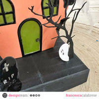 From the *winter season* die-cut I cut out the tree. To create the ghosts, I took a 1 cent coin and made the head round and then drew the tail part freehand. These were also covered with glossy accent.