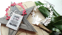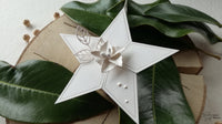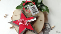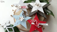 Sito WebWhen you talk about decorations, a scene of hanging things appear in my mind. At Christmas I like to tie to the rafters embellishments that come down at different lengths, so I though I could use the *Prism Frame Box* die to make small stars embellished with branches and leaves.