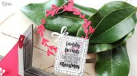For the wreath I used the Mistletoe die and the first one I embellished with a frame of the Good Cheer for Christmas stamp and I cut out the center to glue a piece of vellum stamped with the sentiment on the back.
