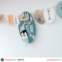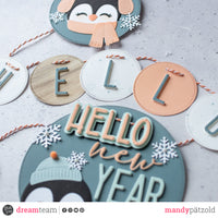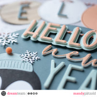La scritta centrale è composta da "Hello new" dal set *Hello baby sentiment* e le lettere della Giant Alphabet.