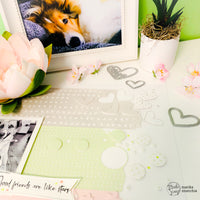 3. For the grey one I used the Deco Lines mini hearts and the ones from the *True Love set* (which I absolutely adore because you can also die-cut the frame border).