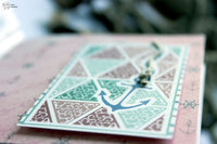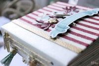 The cover's embellish is a mix of stickers, stamps and die cuts from *Sailor's Life* stamp and dies set, die cuts from *Ramo 2* on Vellum and Bordeaux cardstock. The funny part here is to play with layers.