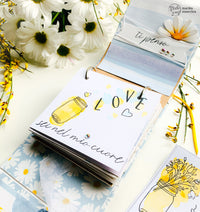 To make this project I used the new paper pack *Spring Flowers* and the stamp *I think of you* drawn by Tommy. To make the structure that contains the album I used the 1mm *vegetable carton*; for the embellishments I used the die cutting *dashing rectangle* with which I cut the *sirio white tommy paper* that I stamp done of the bouquets and the jar of the set on, and the banner die.