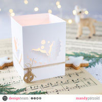 First, I created a little lantern with our Butcher's Broom die. To do this, simply take a strip of 8x29 cm paper and fold it lengthwise at 7, 14, 21, 28 and 29 (glue tab) cm.