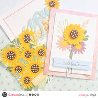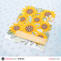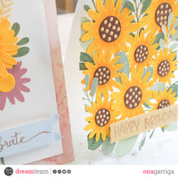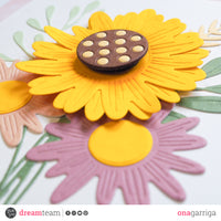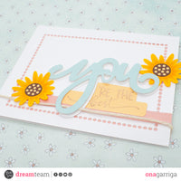 Often when we start with paper and scrapbook we get a little frustrated about having just a few materials. So I decided to create these three cards using the same material but having three different looks: sunflowers are made with the *Happy flowers* die set, Rub on for the sentiments and different cardstock for the different colors.