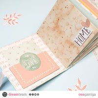 First thing first I've covered the structure with the *grow with love covering paper*, then to the binding which is made with some rope and inside it has a U shape. On the inside part of my mini album I've played with the *Grow with love* collection paper and some pastel cardstock which matches perfectly with the collection.