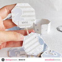 When you open the box you can find 12 tags, one for each months of the little baby boy!