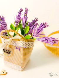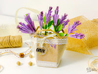 To make this lavender basket, I used 2 new special papers: the white gauze paper/kraft and the clear gauze paper. They are both very easy to die-cut or to fold when needed.