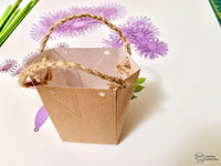 I die-cut both papers with the *Really Cute Box* die. To create the basket, I used the white/kraft paper (white for the inner side) and helped myself with some double-sided tape. I then covered it with the beautiful clear glauze paper.