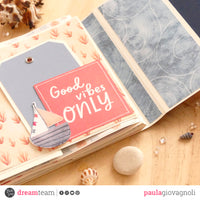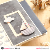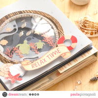 As you can see the focus part of this mini album is without any doubt the covering part with this embellishment created like an aquarium with the *waving elements* die set and the *Sea charms*.