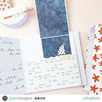 For the decorations I've used both *sunset on the beach die cuts*, *Cute boat* and *Sea charms* die sets that will combine perfectly to the paper collection for a wonderful result.