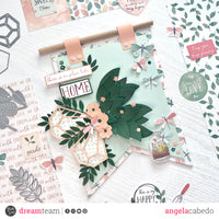 In this case, the project I have done is a banner. It is very nice to decorate a room or to make a gift. Its measurements are 17.5 cm wide by 24 high, I have covered it with one of the papers from the Grow with love collection, and on top of it, reducing 1 centimeter on each side at the base, I have cut a double-sided Pastel tiffany paper to give contrast to everything that we are going to put on it.