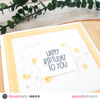 after the gray winter days, the new collection of ModaScrap came just right. Finally fresh colors again, lots of flowers and such great design paper. I have a few greeting cards for you today. The die CREATIVE SQUARES and CREATIVE RECTANGLES are perfect for multilayer cards. The design paper I used was CREATIVE RECTANGLES, such great spring colors.