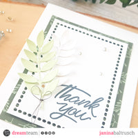 For this I have combined the stamp sets MODASCRAP CLEAR STAMPS - LINEA TOMMY - XOXO us MODASCRAP CLEAR STAMPS - THANKS. A highlight on each card are the SEMI PEARLS MATTE SILVER.