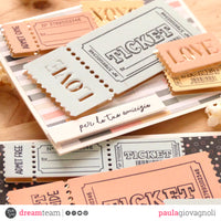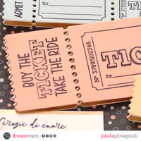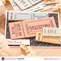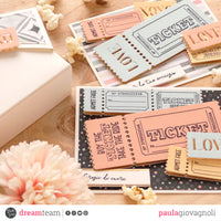 I made two greetings postcards using the new "creative ticket" dies and "ticket" stamps. I layered the tickets at different heights using adhesive foam and gold cardstock underneath.