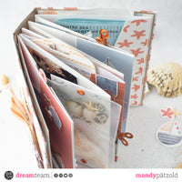 All'interno ho incollato una rilegatura a cerniera nascosta con quattro cerniere. A queste possono essere quindi allegate molte pagine, scomparti e lembi per racchiudere tutte le esperienze della vacanza e i ricordi estivi.