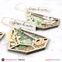 I have a brand new project to share with you today showcasing some of the gorgeous products from the ModaScrap Spring 2022 Release. To create these tags I used the amazing Terrarium Box die combined with the beautiful Spring Greenery die and the Semplicemente Tu stamp set.