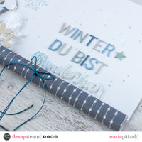 But do you see the real highlight, the die cut word "wonderful" in German? Yes, you see right, you can now have your desired words made in three fonts exclusively at ModaScrap.