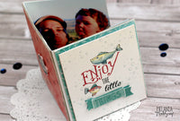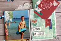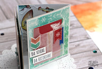 Ho decorato un'altra facciata con una bustina realizzata col vellum e poi l'ho abbellita con ritagli di carte e timbrate. Nella bustina ho inserito due fogli di carta adatti per poter scrivere i nostri ricordi sul retro!