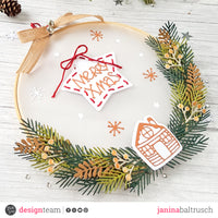 I transformed an old embroidery frame into a decorative piece. I covered the embroidery frame with transparent paper. The basis are the twigs from the set MODASCRAP FUSTELLA - CHRISTMAS BRANCHES.