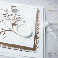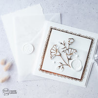 If you like to close cards with a bow, don't forget to fix a ribbon of your choice under the second layer, before you glue it down. If you like wax seals, go for it. It puts a special touch on every wedding card.