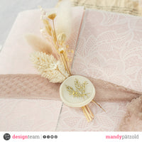 To the vellum with lace motif fits perfectly a ribbon made of lace, which I found in my stock. I combined dried flowers and a wax seal with it.