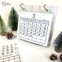 for my monthly post I've decided to say goodbye to this strange and unpredictable 2020 and to welcome this new year with a new scrap calendar made with ModaScrap products. As you probably see the key player of this project is the *Calendar* stamp set, which is an interesting kind of set with its feature to offer a never-ending possibility to create calendars, it has a particular structure thanks to which you can create a calendar from now on every year. Another special feature is the "no language" prefixed, in fact you can easily switch from one to another with the singular letters on the bottom of the set.