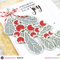 I’m Anna and I’m so excited to share my first project as a member of the amazing ModaScrap Dream Team! My card today features a couple of products from the latest ModaScrap Christmas Release: the beautiful Mistletoe Branch die and the gorgeous Wanderlust Paper Pack.